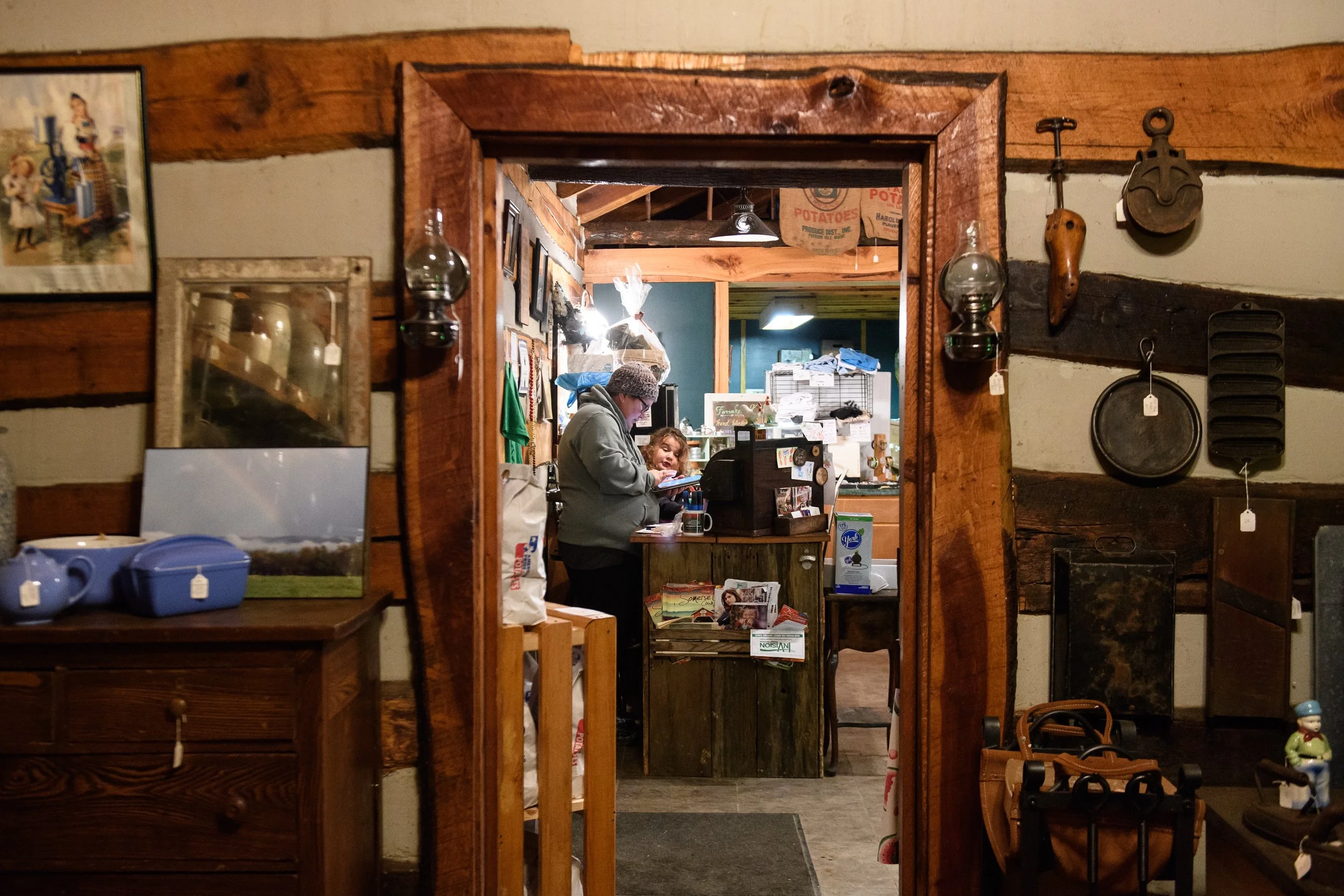 Mary Beth looks through mail as Nellie draws beside her in their family store, Woah Nellie Dairy, on their farm in Saltlick and Bullskin, Pa. Mary Beth had planned to make cheese to sell at the store, but now has to rely on the help of friends and family to keep the store running part-time due to the pain and physical limitations caused by her cancer.