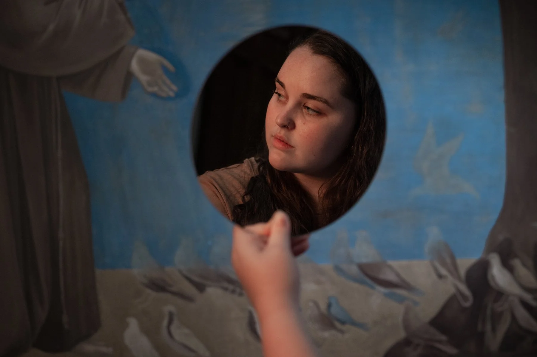 But these institutions — and most importantly, their students — know that violence is likely more pervasive than the numbers show. The following photos of the survivors and advocates who shared their experiences with the Red Zone reporting team centered around the use of circular mirrors. The tool allowed for an element to connect the participants to each other – to take the isolation of these acts and reflect forward into the larger community of people who are finding each other as they build healing around sexual and intimate partner violence. Sometimes, the mirrors are used to craft visual metaphors for the physical experiences that survivors shared such as dissociation with the body and periods of memory loss. The mirrors also allowed for survivors to participate at the level of identification they were comfortable with. As one advocate put it, “I like to say: It’s a community I love dearly, but it’s one that I’m never happy to see other people join.”